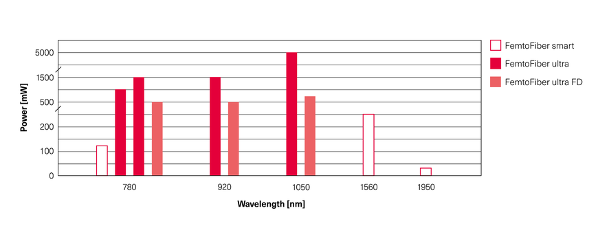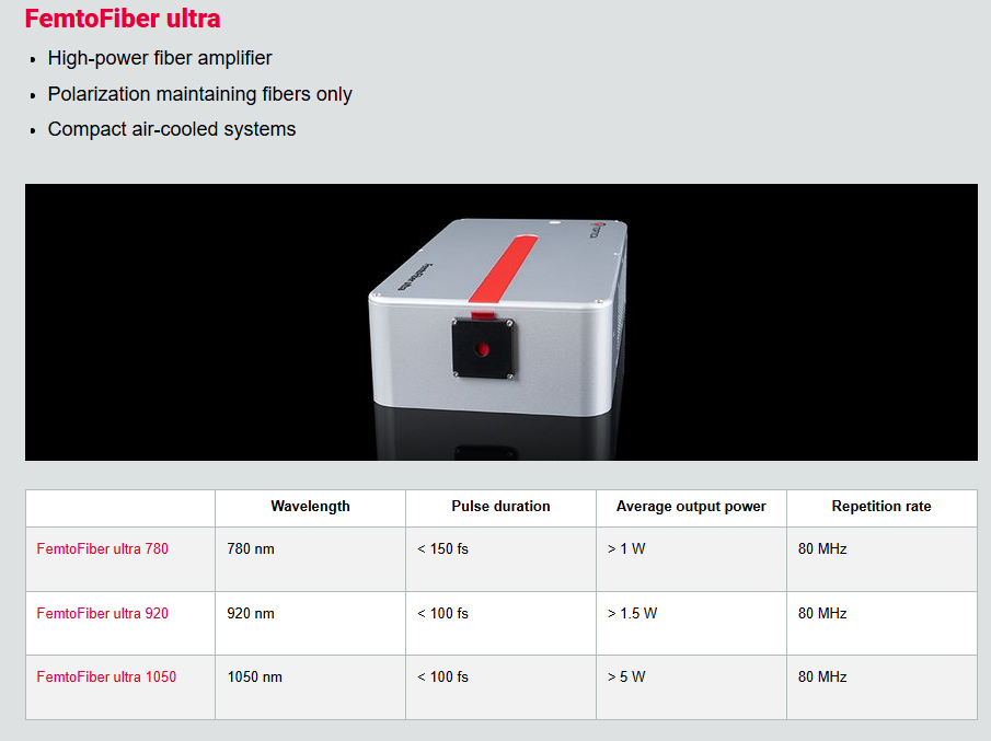 我们提供几种满足这些要求的产品基于铪(Er)和镱(Yb)的超快光纤激光器,如FemtoFiber smart、FemtoFiber ultra和Femtoiber dichro系列。